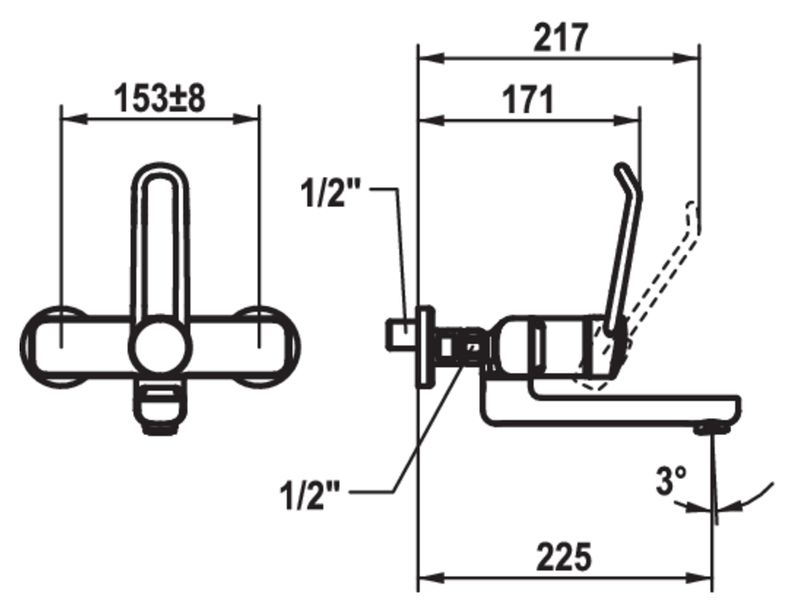 KWC Vita Pro 4, Badarmatur chrom, Hochdruck, Hebel 125 mm, Ausladung 225 mm