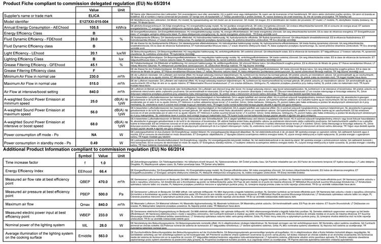 Technische Informationen der Elica HILIGHT