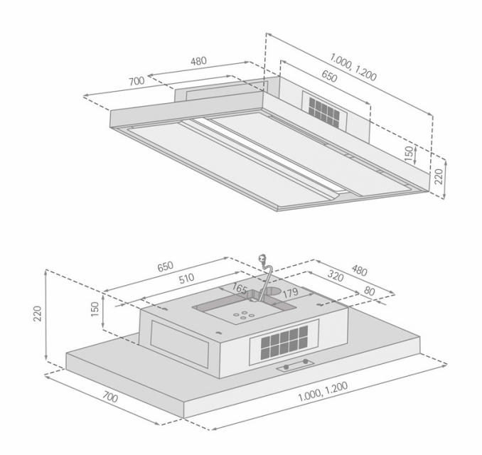 - Empfohlene Montagehöhe vom Fußboden zur Unterkante Haube max. 2,50 m.
