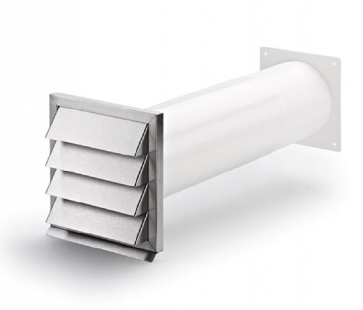 - Mauerkasten mit Edelstahl-Außenjalousie und Rückstauklappe und Teleskoprohr