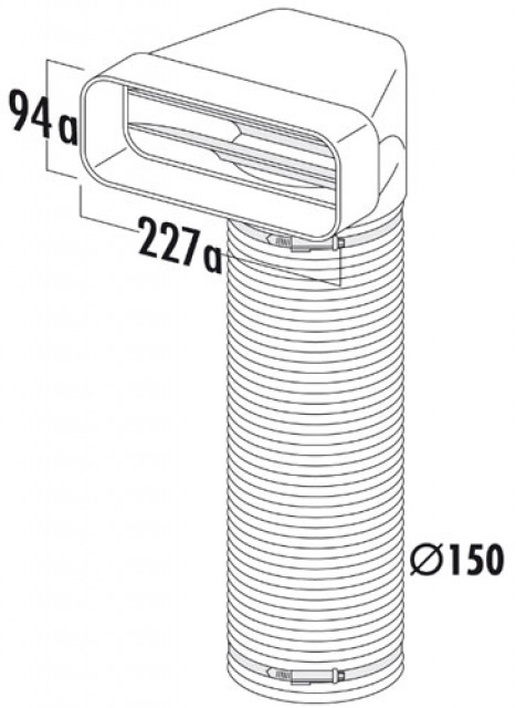 - Umlenkstück 90° mit Luftleitkörper, Flexschlauch und 2 Schlauchklemmen