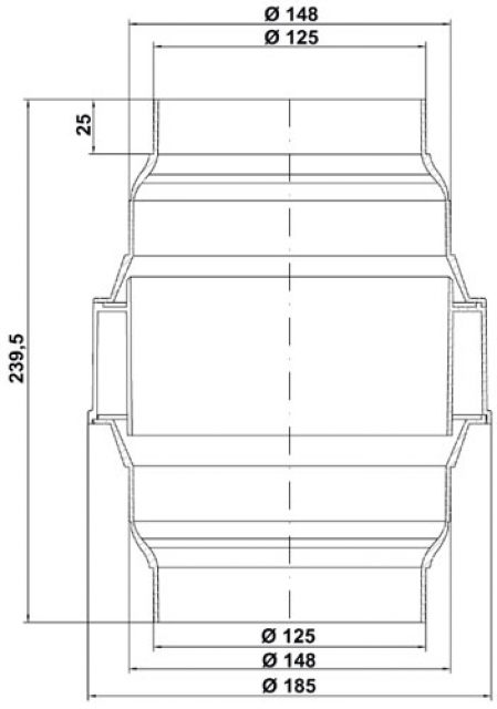 - Beidseitiger Anschluss von Schläuchen und Rohren auf Ø 125 mm und Ø 150 mm möglich.