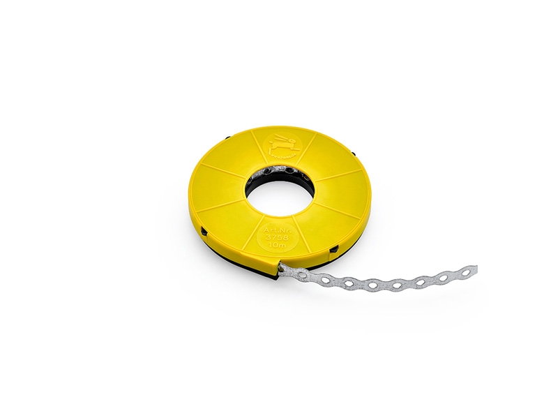 Hochfestes Montage-Lochband aus verzinktem Stahl im Kunststoffspender. Zur Befestigung von Rohren, Stangen, Kabeln, Kabelschächten, Klimaschächten etc.