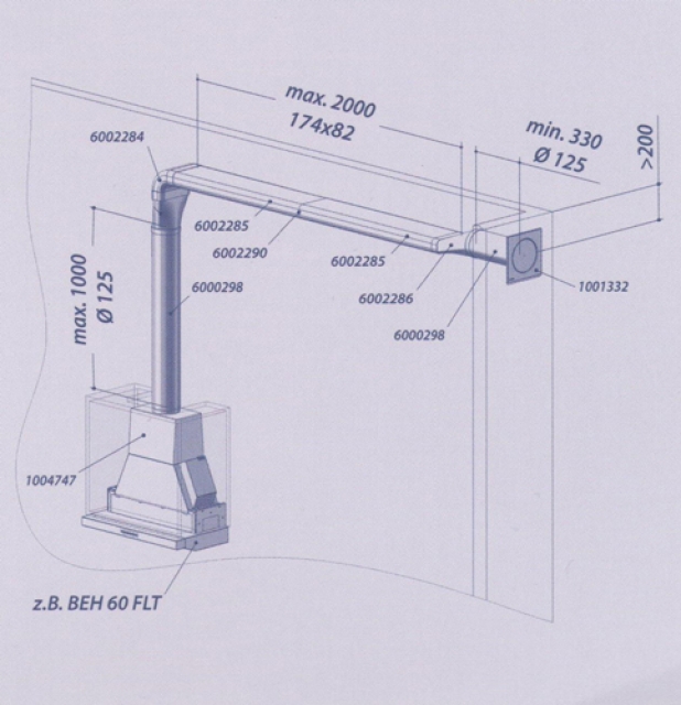 berbel Hybridfilter BHF 125+ eckig, Ausgang oben, Umluft-Zubehör