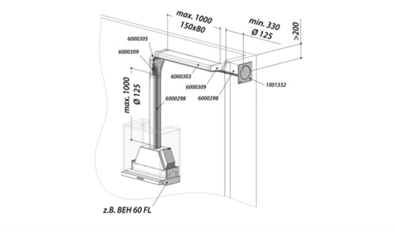 berbel Abluft-Set ECO II Flach 125 bT, Abluft-Zubehör, mit Hybrid-Filter