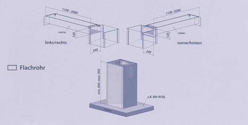 berbel seitlicher Ausgang für Flachrohr im Komplettpaket bis 500 mm, Ausgang links oder rechts, 1001420