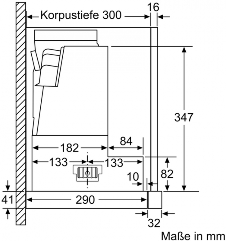 • Einbaumaße (HxBxT): 385 x 524 x 290 mm