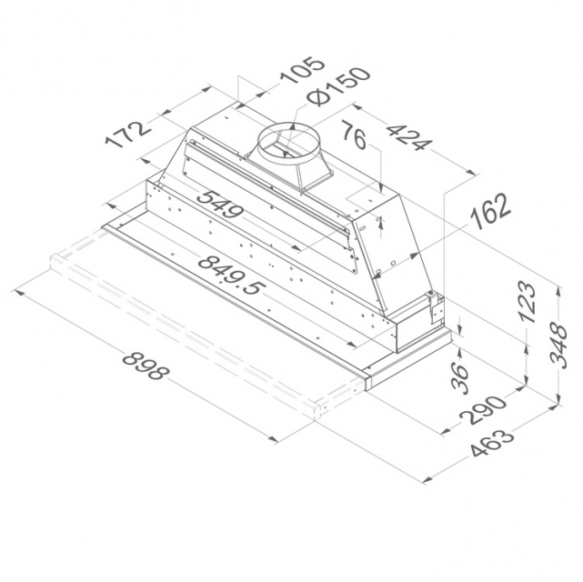 Zum Einbau in einen Hängeschrank (Maße siehe Verkaufshandbuch)