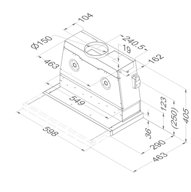 Zum Einbau in einen Hängeschrank (Maße siehe Verkaufshandbuch)