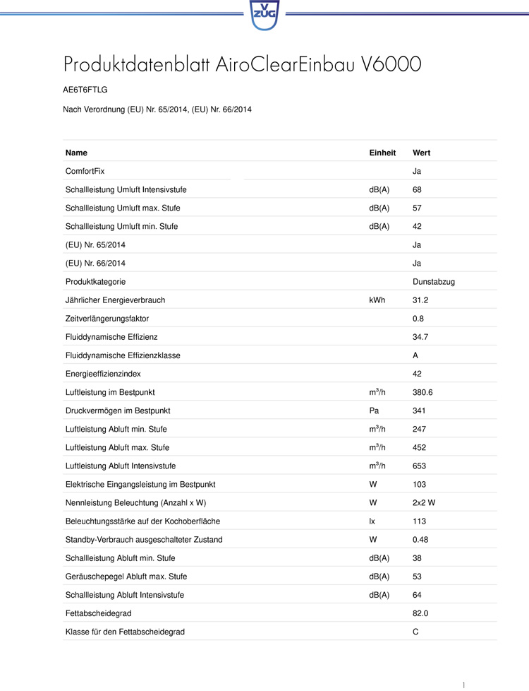 - Geräuschepegel Abluft max. Stufe: 53 dB(A)