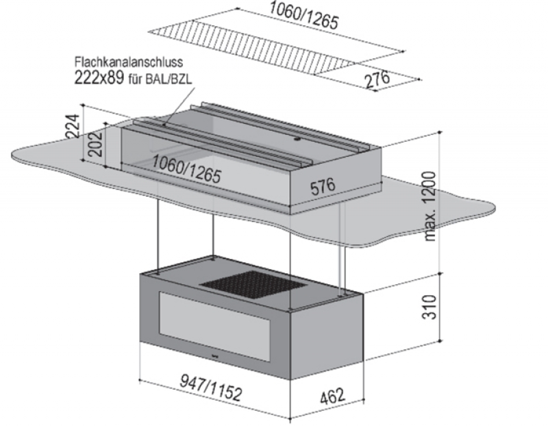• höchste Dunstwrasenerfassungs-Effizienz mit bis zu 1.200 mm statt wie bisher 800 mm Liftfunktion und somit immer optimalem Abstand zum Kochfeld