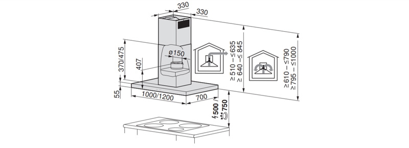 - Abluftbetrieb, Umluftbetrieb mit Zubehör