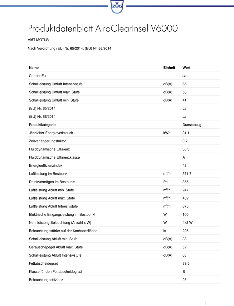 - Schallleistung Umluf Intensivstufe: 68 dB(A)