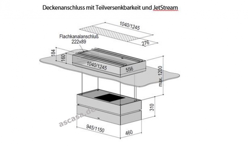 Immer da, wenn Sie sie brauchen, aber doch unsichtbar. Mit diesem Deckenanschluss fährt ihre Haube bündig zur Decke ein und verschwindet im Deckenkasten.