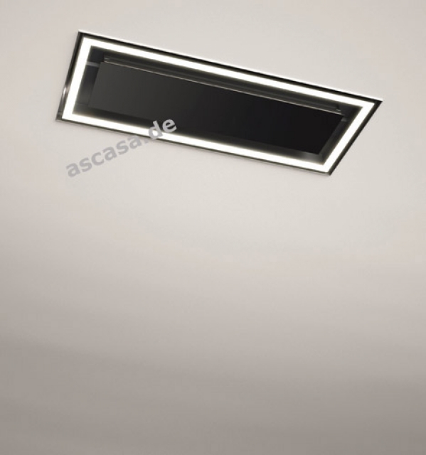 - Seillänge individuell verlängerbar für hohe Räume; Haube schwebt auf Höhe der Seilverlängerung unter der Decke.