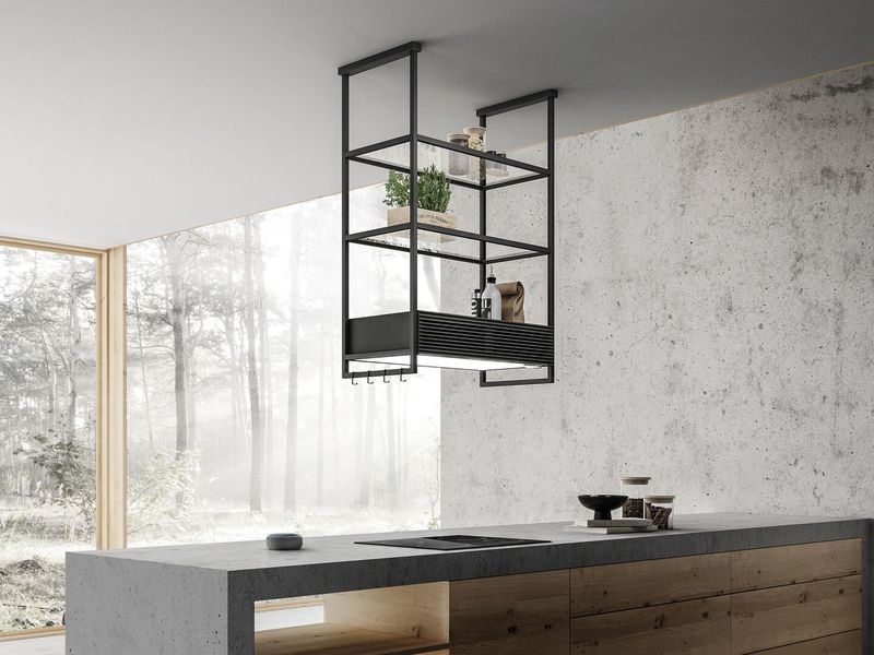 - Open Suite bietet mehrere Funktionen: nicht nur eine Dunstabzugshaube, sondern auch Licht und eine große Auswahl an Regalen. Es stehen vier Standard-Konfigurationen (Insel 80 und 160 cm, Wand 80 und 160 cm) zur Verfügung, die sowohl eine Komplettlösung als auch die Basis für weiteres Zubehör sein können.