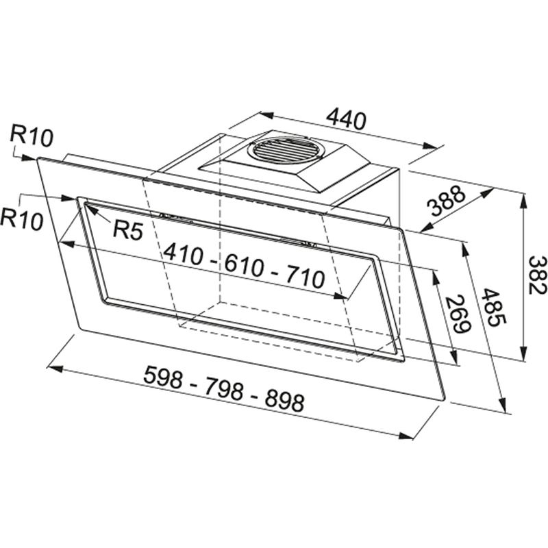 - Sicherheitsabstand zwischen Unterkante Haube und Induktions-Kochfeld: 50 cm, Gaskochfeld : 65 cm