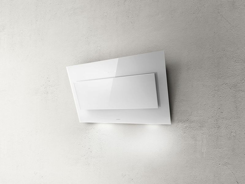 Elica VERTIGO WH/F/120 Wand Haube weiss, 120 cm, Umluft/Abluftbetrieb, touch-control-Bedienung, LED-Beleuchtung, schwarzes Glas, Energieeffizienzklasse B, PRF0079556C
