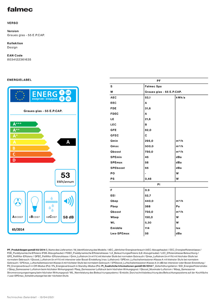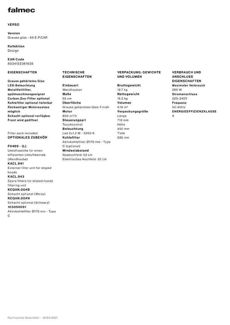 • Austausch gegen einen gleichwertigen oder neuen Artikel Falmec Falmec Verso, Wandhaube, Glas grau, 55cm (ggf. auch ein Nachfolgemodell).