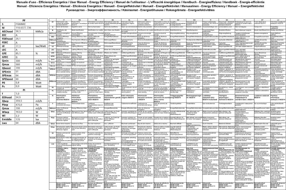 Für Franke Dunstabzugshauben lt. Aufstellung.