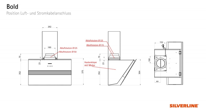 - 150 mm (Reduzierstück auf 125 mm im Lieferumfang enthalten)
