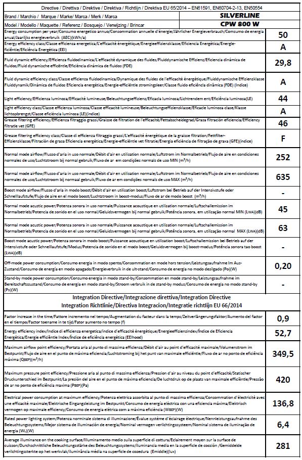 - gemäß EU-Regulierung 65/2014 - EN61591, EB60704-2-13, EN50554