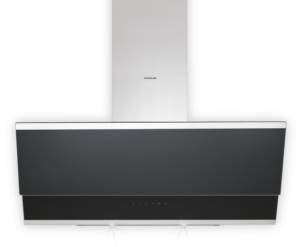 Silverline Zenith Glas Schwarz mit Edelstahl Applikation 80 cm Kopffreihaube