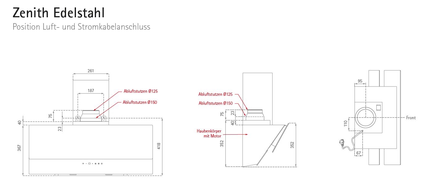 - Touch-Control-LED-Elektronik mit 15 Minuten Nachlaufautomatik und Fettfilter-Reinigungsanzeige