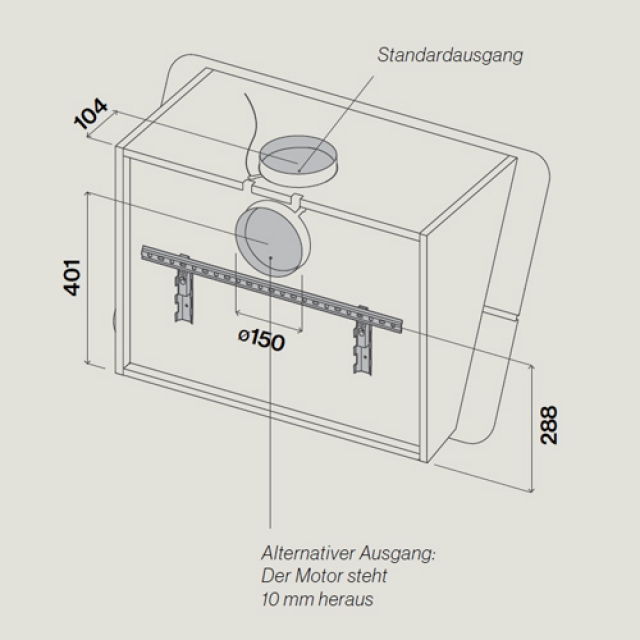 • Motor kann gedreht werden um einen hinteren Abgang zu ermöglichen