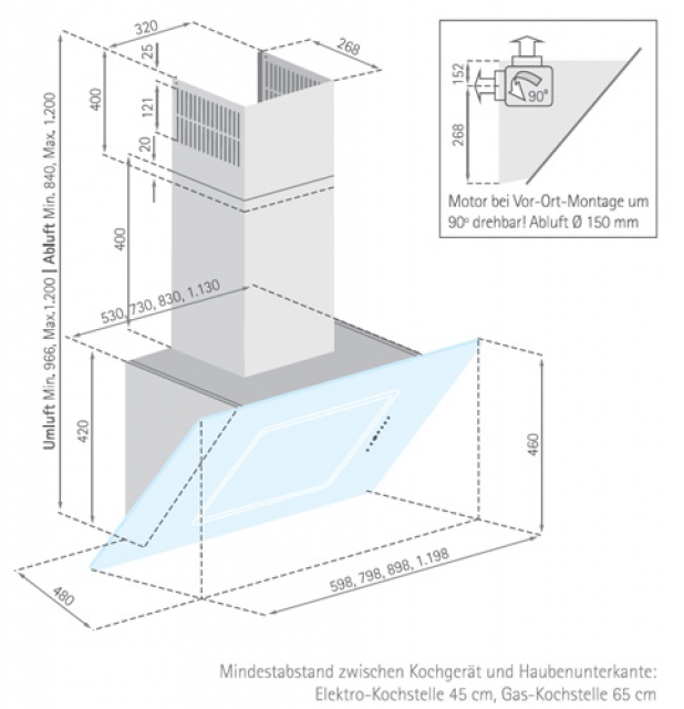 - Abluft- und Umluftbetrieb möglich