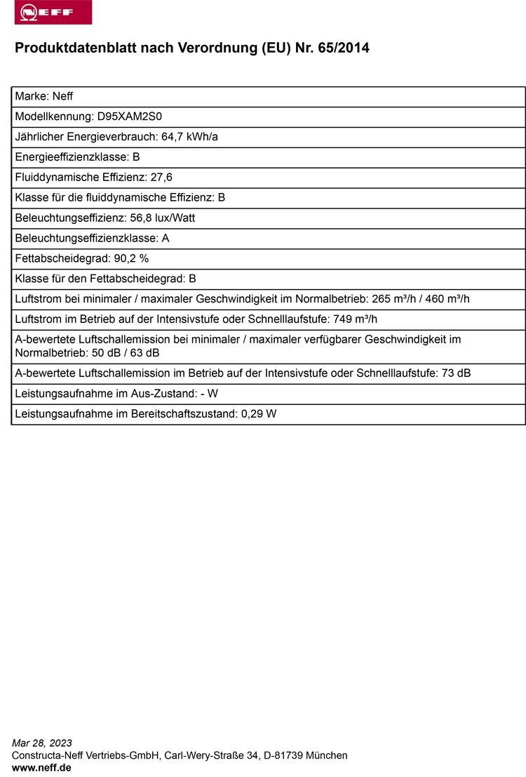 • Abluftleistung nach EN 61591: max. Normalbetrieb 459 m³/h, Intensivstufe 749 m³/h