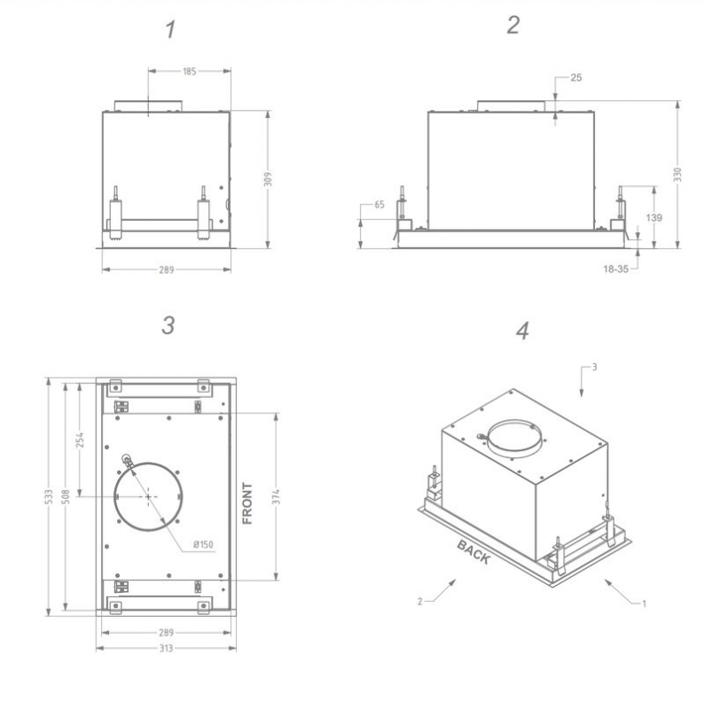 - Abluftstutzen Durchmesser (mm) 150