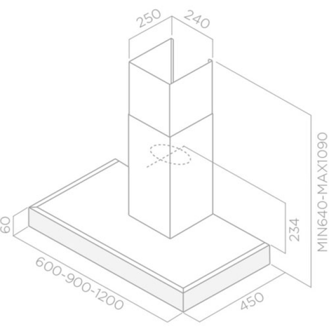 Technische Informationen der Elica Spot Plus I-X A120 Wand Esse PRF 0100 242A