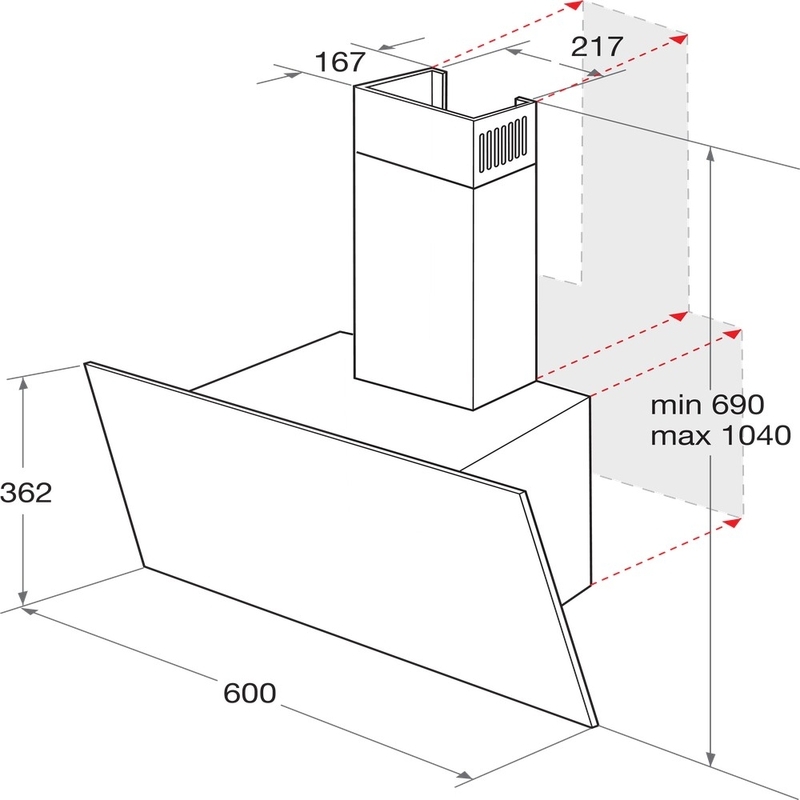 • Außenmaße (H x B x T): 1040 x 600 x 362 mm