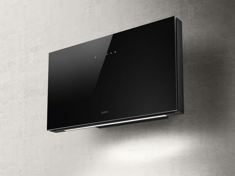 Elica PLAT BL/F/55 Wand Haube schwarz, 55 cm, Umluft/Abluftbetrieb, touch-control-Bedienung, LED-Beleuchtung, schwarzes Glas, Energieeffizienzklasse A, PRF0164946