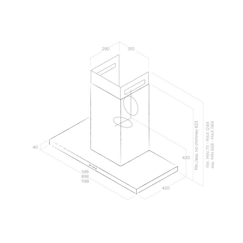 Technische Informationen der Elica Thin I-X A60 Wand Esse