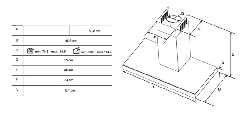 - Höhe des Kamins mm min 708 ~ max 1,146