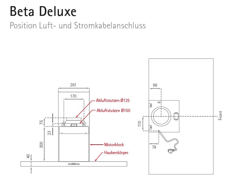 - 150 mm (Reduzierstück auf 125 mm im Lieferumfang enthalten)