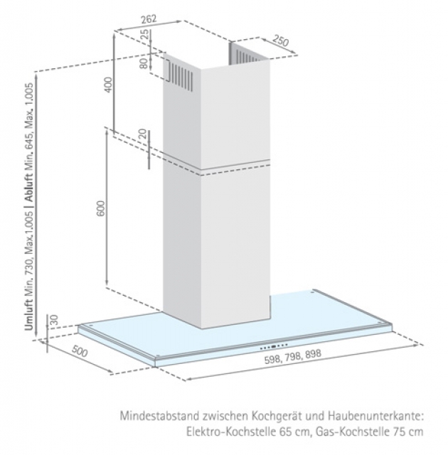 - LED-Elektronik mit 15 Minuten Nachlaufautomatik und Fettfilter-Reinigungsanzeige