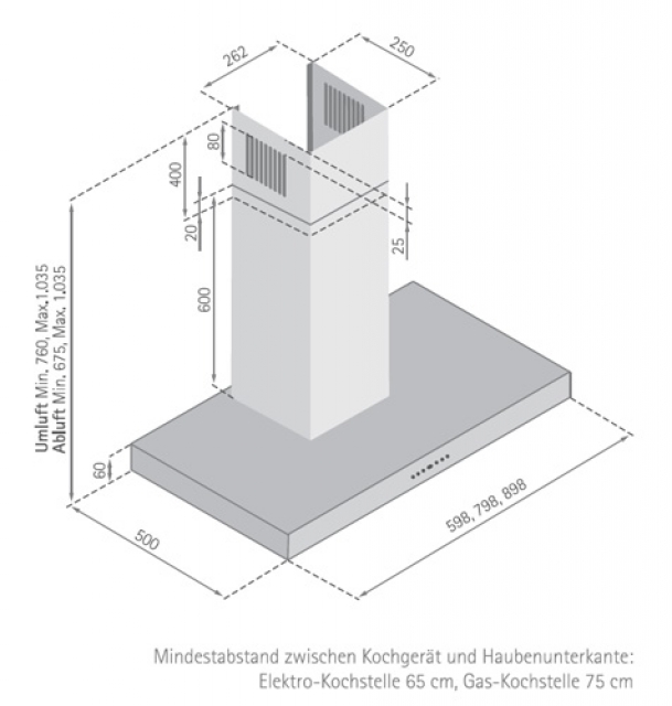 - 3-Stufen-LED-Elektronik mit 15-Minuten Nachlaufautomatik und Fettfilter-Reinigungsanzeige