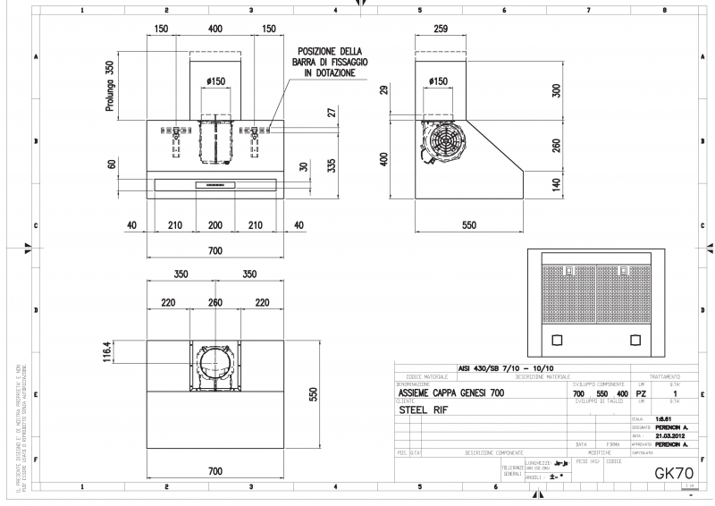 Steel Genesi 70 Wandhaube, Celeste, 70 cm, GK70CE