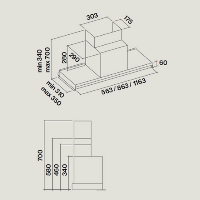 - Installation: Wandhaube/Einbauhaube, 90 cm