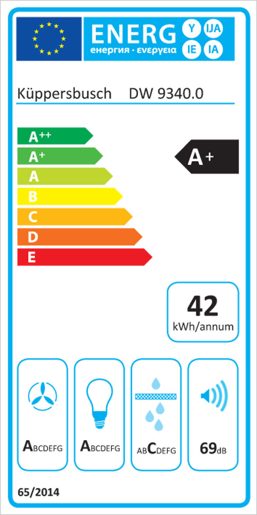 • Gebläseleistung im Abluftbetrieb nach Richtlinie 2010/30/EU: max. Normalstufe 580 m³/h, Intensivstufe 700 m³/h