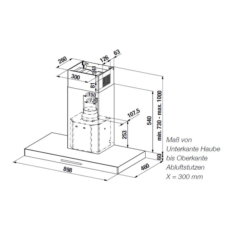 • Gerätemaße B x H x T ca. 900 x 730-1000 x 460 mm