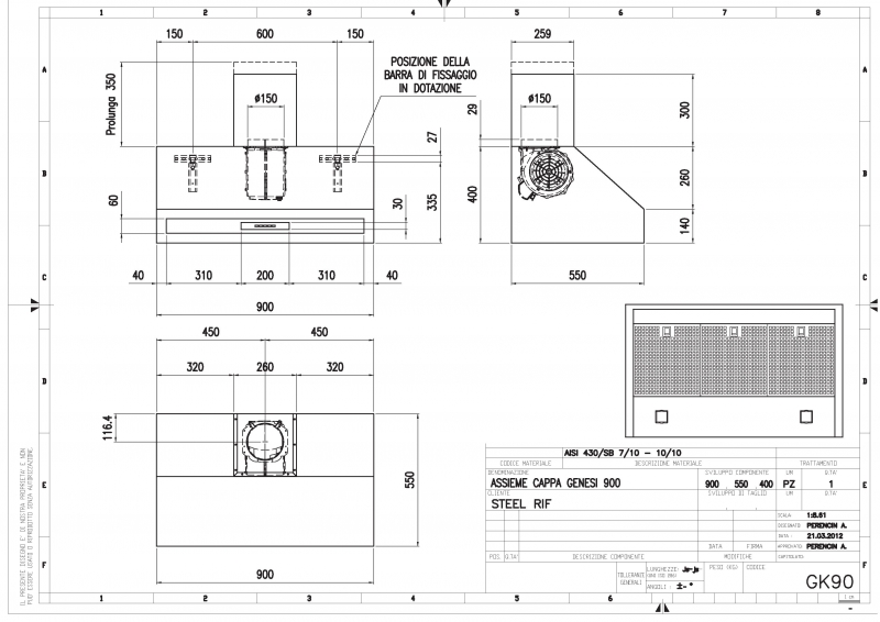 Steel Genesi 90 Wandhaube, Celeste, 90 cm, GK90CE