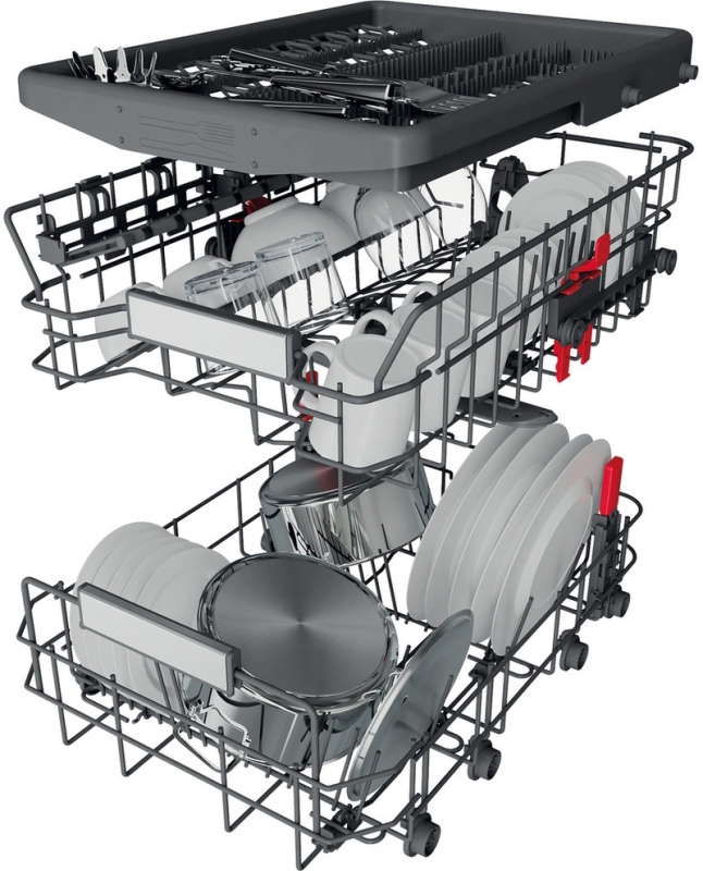 - 4 umklappbare Tellersegmente im Unterkorb