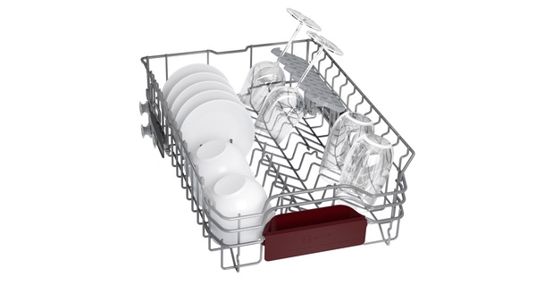 • Klappbare Tellerhaltereihen im Unterkorb (2x)