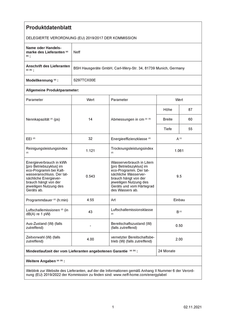 Neff S297TCX00E N70, Geschirrspüler XXL vollintegrierbar, 60 cm, EEK: A, mit 5 Jahren Garantie!products_warranty_conditions