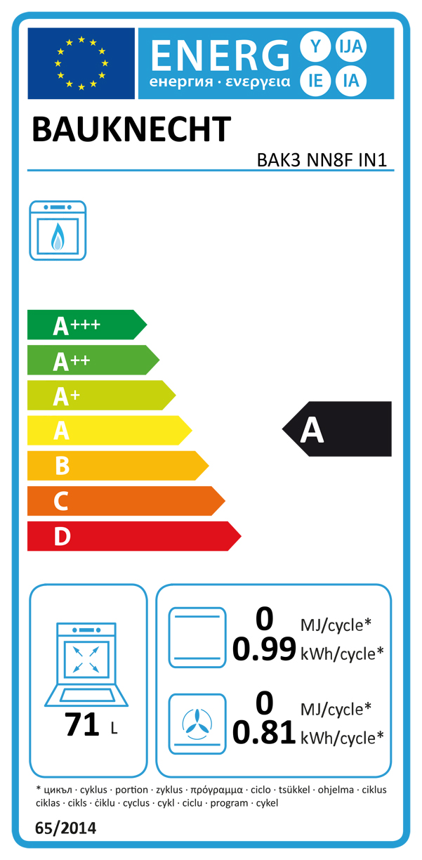 Bauknecht BAK3 NN8F IN Einbau-Backofen, EEK: A