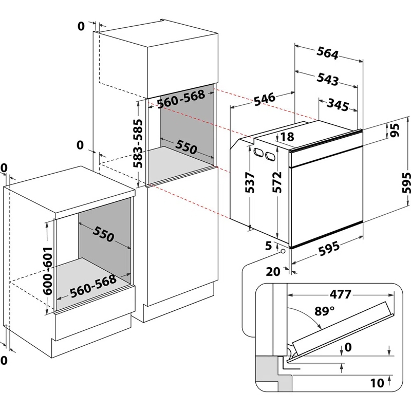 - Nischenmaße (HxBxT): 600x560x550 mm